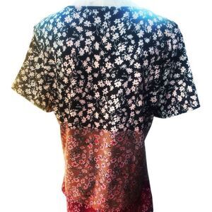 FFF Purple color block Floral Top. Size Large. Measures 19” P2P and is 27” long from shoulder to hem. This top is new with tags.
