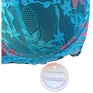 FFF Plus Size Blue Pink Floral Balconette Bra Size 40D
