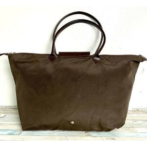FFI FATTA FABRICA ITALIANA BROWN NYLON LEATHER FOLDABLE TOTE SHOULDER BAG HANDBAG