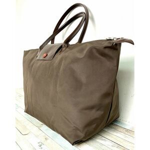 FFI FATTA FABRICA ITALIANA BRWN NYLON LEATHER FOLDABLE TOTE SHOULDER BAG HANDBAG