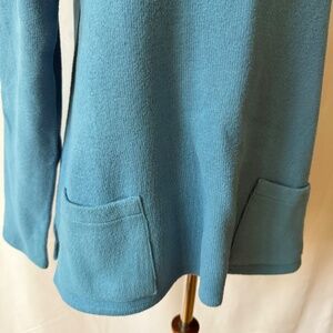 Size Small, pull on, scoop neck, side pockets, soft blue color.
