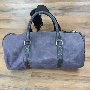This F.H. Wadsworth duffle bag is the perfect addition to any man's wardrobe. With a stylish black and blue design, it's made of durable canvas and leather materials, and features a zip closure for easy access. The bag is lined with fabric and has a width of 18 inches, a height of 10 inches, and a depth of 5 inches, making it a spacious option for carrying all your essentials. Whether you're heading to the gym or embarking on a weekend trip, this duffle bag is sure to impress.
