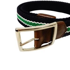 F.H. Wadsworth NYC Braided Blue Green Reversible Belt Brass Buckle Italy Size 40