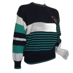 FIA ITALIA Sweater, M, Blue/White/Green stripes, Crested, Pullover, crew neck