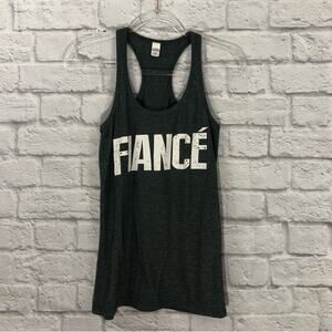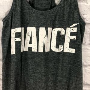 Fiancé Charcoal Gray Racerback Graphic Tank Top with White Lettering.