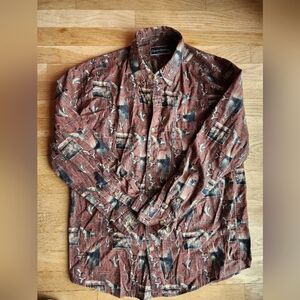 FIELD & STREAM Brown and Tan Duck Print Long Sleeve Button Front Shirt Size M