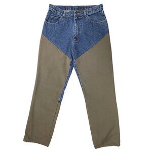 FIELD TESTED GUIDE GEAR ~ Reinforced Field Pants. Men's size 32x30. Medium wash thick denim with heavy duty khaki canvas legs. 5-pocket design.