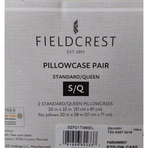 FIELDCREST White PARCHMENT Cotton Percale Standard Queen Pillowcases 2-Pack