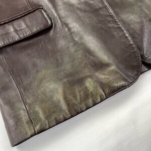 Please note that some areas of leather on this jacket have a metallic sheen from bronzing - see photos. From the web: "This metallic sheen is the result of oxidization of excess aniline dyes." This is the perfect item for a leather professional who knows how to clean it properly. The leather is still soft and the jacket itself is in excellent condition.