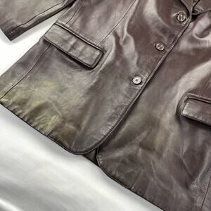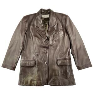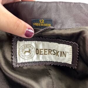 A genuine brown leather collared jacket from the brand Deerskin, listed as size 12.