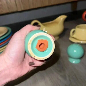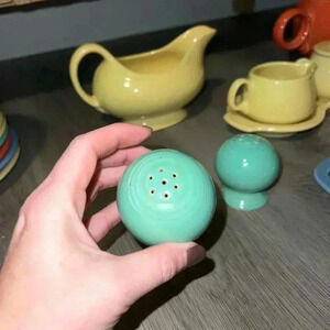Check out my other listings for the matching sets of fiestaware. This listing is for the salt and pepper shakers. Need a cleaning