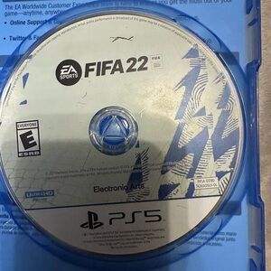 PlayStation 5 FIFA 22 game. Features PSG team jersey with adidas and Jordan branding. Navy blue sports uniform with red and white trim details.