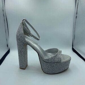 FIFSY Women Rhinestone Platform Chunky High Heels Sandals Open Toe Ankle Strap Pump Shiny Wedding Party Dress Shoes, Brand New!