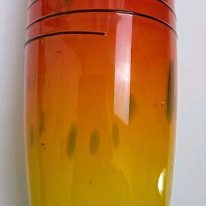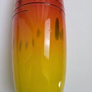 FIFTH AVENUE Crystal Art Glass Vase 12" Orange Yellow Red Black w White Interior