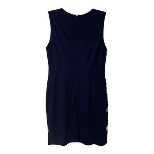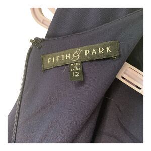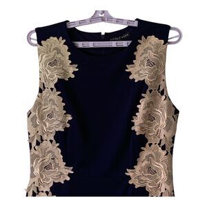 FIFTH & PARK Dress SZ 12 Navy & Beige Gold Floral Lace Sheath Dressy Cocktail