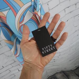 FIFTY STREET BLUE GEOMETRIC DESIGN HIGH NECK SUMMER TOP SIZE MEDIUM NWT