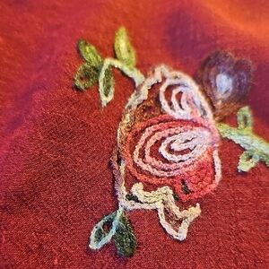 FIG & FLOWER Embroidered Floral Red Fabric Blouse. ptl