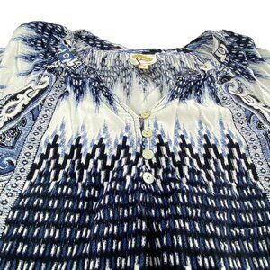 FIG & FLOWER Women Paisley Print Blouse Sz M Blue 3/4 Sleeve Abstract 26-3