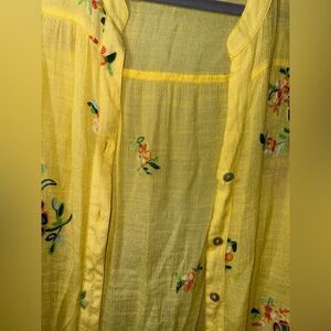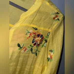 FIG & FLOWER Yellow Boho Embroidered Floral Hippie Chic Loose Fitting Top SZ L