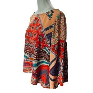 FIG and FLOWER Women Blouse Size S Multicolor 3/4 Wide Sleeves Abstract 77-22