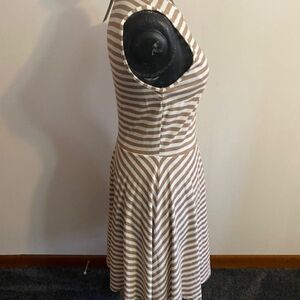 FIGL White, Tan stripe dress, size XL (92% Cotton, 8% Polyester)