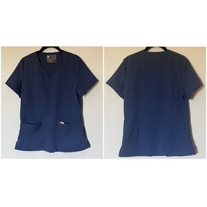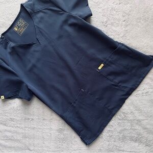FIGS Alexandria Relaxed Fit Four Pocket V-Neck Technical Scrub Top Navy Blue S