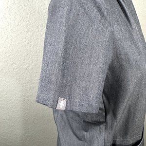FIGS Banepa Scrub Top in Graphite. Four way stretch. Breathable. Angular high cut v neck. Flattering pleated shoulder seams. Four functional pockets, two of them deep perfect for a notebook or snacks. Medical scrub top. Nursing scrubs. *AI cover photo.