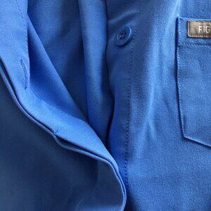 FIGS Blue Zip Pockets Short Sleeve Hidden Logo Button Scrubs Shirt Top