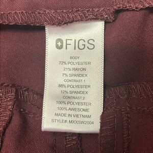 FIGS Burgundy Women’s Pull-On Pockets Elastic Waistband Drawstrings- Medium