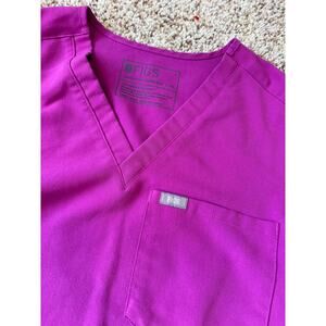 FIGS CATARINA Technical Collection One-Pocket Scrub Top, Hot Pink; XS with tooth on shoulder. Very lightweight. Quick dry fabric. Comfortable & Durable. V-Neck; Darted Back; side slit. In excellent pre-owned condition.
