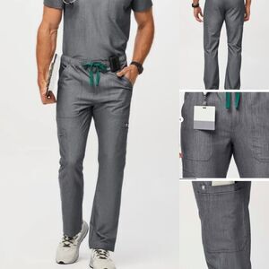 FIGS Cairo Cargo Scrub Pants Men's Large Tall 34X36 Gray Straight Leg Drawstring