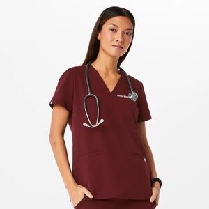FIGS Casma 3-Pocket Scrub Top and Zamora Jogger Scrub Pants in Maroon size Small