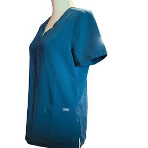 FIGS Casma Three Pocket Scrub Top, Teal, Size Small. Total of three pockets, Classic fit, One interior security pocket, Two front drop pockets, Modern V-neck, Darted back, Side-slit hem, Engineered with Technical Comfort. Retails for $38, excellent condition. #figs #scrubs #medical #nurse #scrubtop