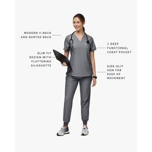 FIGS Catarina One-Pocket Scrub Top in Graphite Gray size Women's X Small