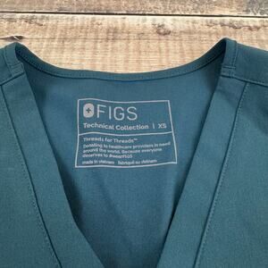 FIGS Catarina Scrub Top Womens XS Teal 1 Pocket Medical Short Sleeve V Neck a