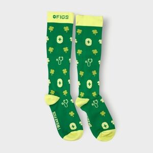 FIGS Compression Socks Lucky 4 Leaf Clover Green One Size Padded Socks