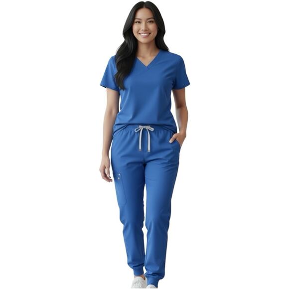 FIGS Jogger Pants Pull On Scrubs Zip Cargo Pocket Blue Women’s Size Medium