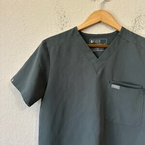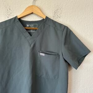 FIGS Leon Three-Pocket Scrub Top Mens Sz XS Gray Stretch V-Neck Medical Uniform M3662
