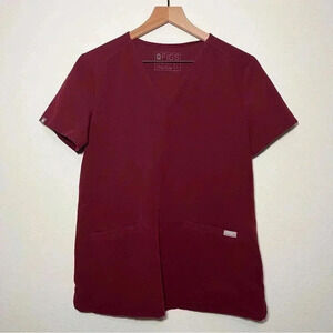 Figs Maroon Casma Scrub Top 3 pocket Vneck
