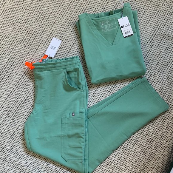 FIGS NWT Jade Color Set in Small: Casma 3-Pocket Top and Yola Skinny Scub Pants
