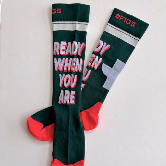 FIGS New Compression Socks READY WHEN YOU ARE Green Orange White Small Medium
