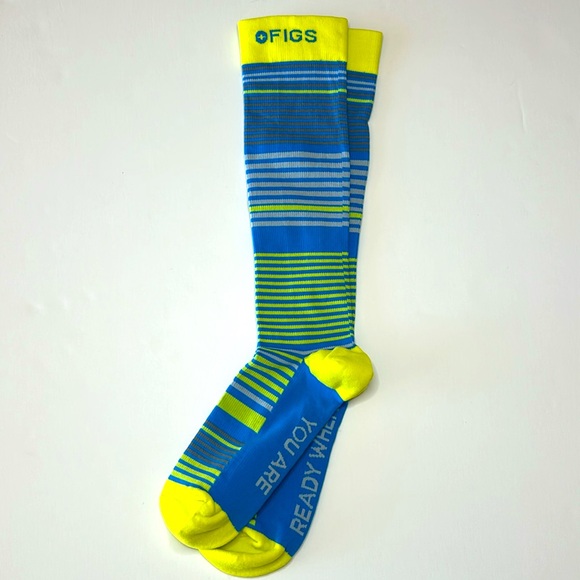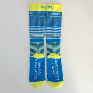 FIGS New Striped Compression Socks Small READY WHEN YOU ARE Blue Bright Yellow