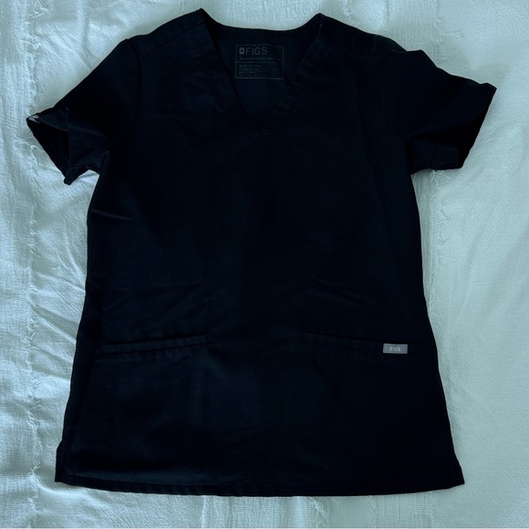 Figs black scrub top. Size xs. Style: Casma; v neck 3 pockets in front.