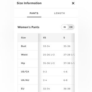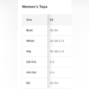 Size chart from website is posted in photos for reference.