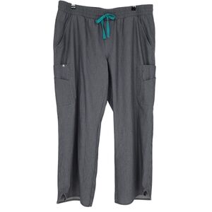 FIGS Scrub Straight Wide Leg Cargo Pants Graphite Gray Pull On Stretch Waist XL