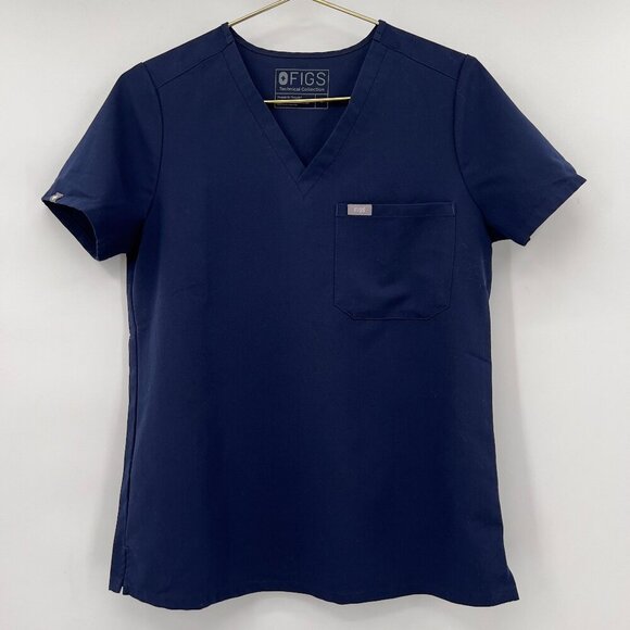FIGS Technical Collection Catarina One-Pocket Scrub Top Women’s Size S Navy Blue