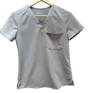FIGS Technical Collection Scrub Top Short Sleeve Pocket Gray Womens Size XXS