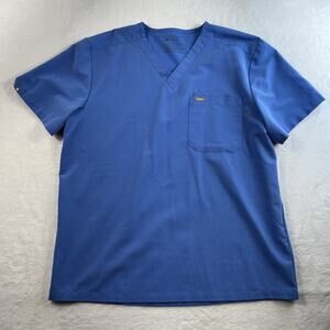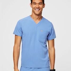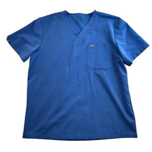 FIGS Technical Men's XL Leon Three Pocket Pen Sleeve Scrub Top V-Neck Ceil Blue
