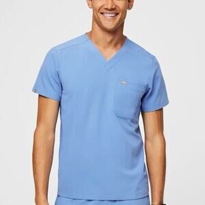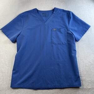 FIGS Technical Men's XL Leon Three Pocket Pen Sleeve Scrub Top V-Neck Ceil Blue
