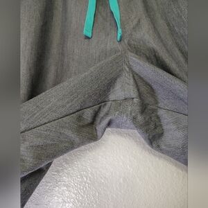 Comfortable gray pants. Teal drawstring adds a pop of color. Ideal for casual wear.